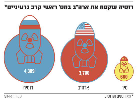 אנו עדים למציאות שבה המגבלות מוסרות, והמספרים מדברים בעד עצמם. נכון להיום, רוסיה מחזיקה ביתרון כמותי עם כ-4,309 ראשי קרב גרעיניים. ארה"ב נמצאת מעט מאחור עם כ-3,700. יחד, הן מחזיקות ב-87% מהארסנל העולמי.